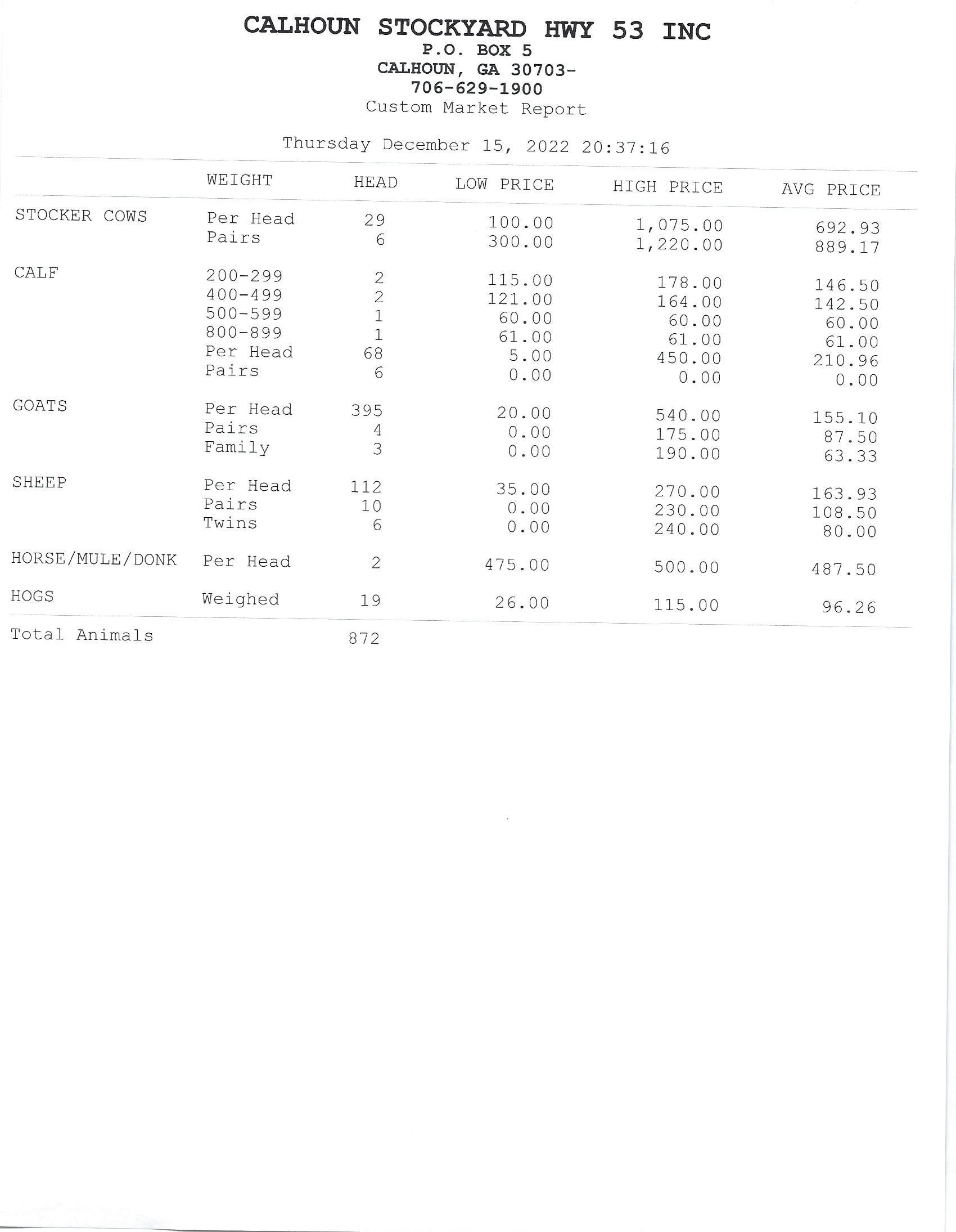 The Kirbyville Auction Barn Market Report Kirbyville Auction Barn Date Of Sale 11 19 16 Total Head 268 No Sale Saturday November 26 2016 Thanksgiving Bull Calves 000 299